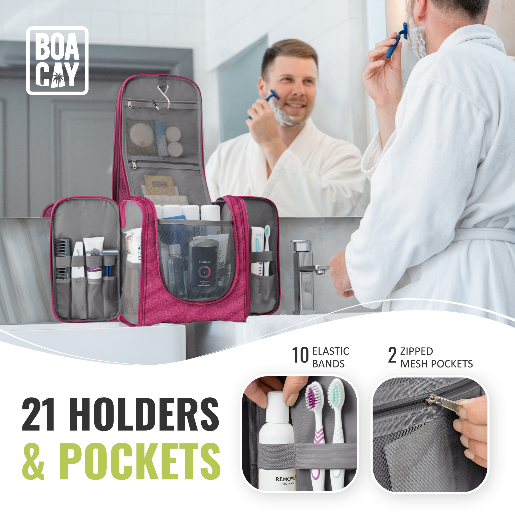 This bag holds ALL of my shower supplies as well as hair and skin care products! It collapses down—great for storage. It has a hook on the inside to hang it up.